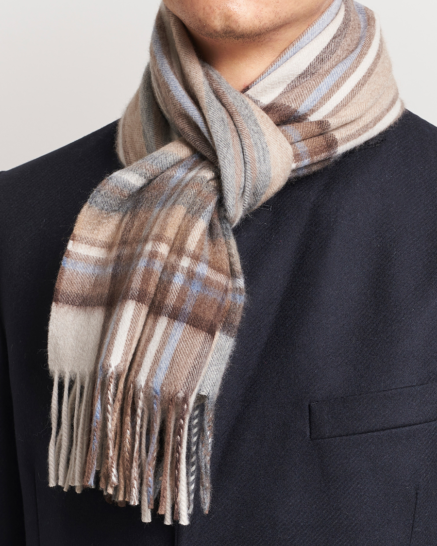 Striped/Checked Cashmere Scarf 30*160cm Natural Jean
