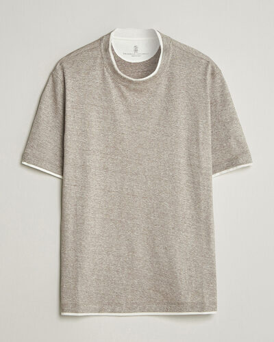 Double Collar Linen T-Shirt Brown