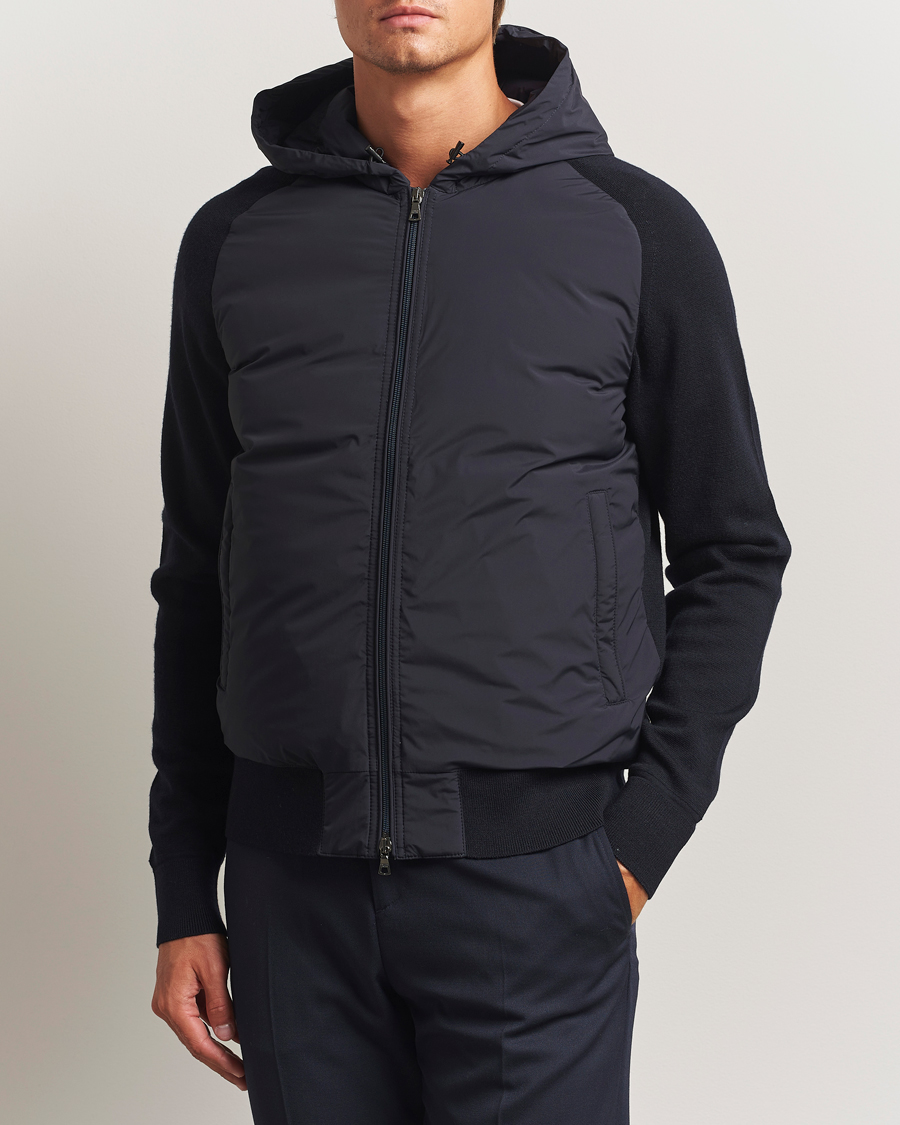 Merino Wool Padded Hybrid Hood Jacket Black