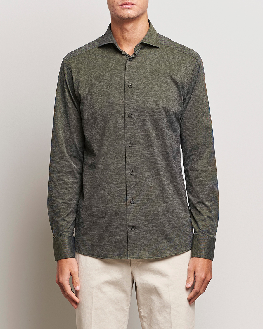 Slim Fit Four Way Stretch Shirt Dark Green