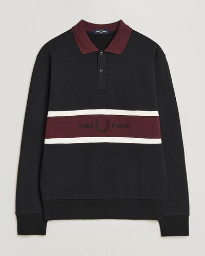 Embroidered Paneled Polo Sweater Black