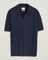 Linen/Cotton Open Collar Polo Evening Blue