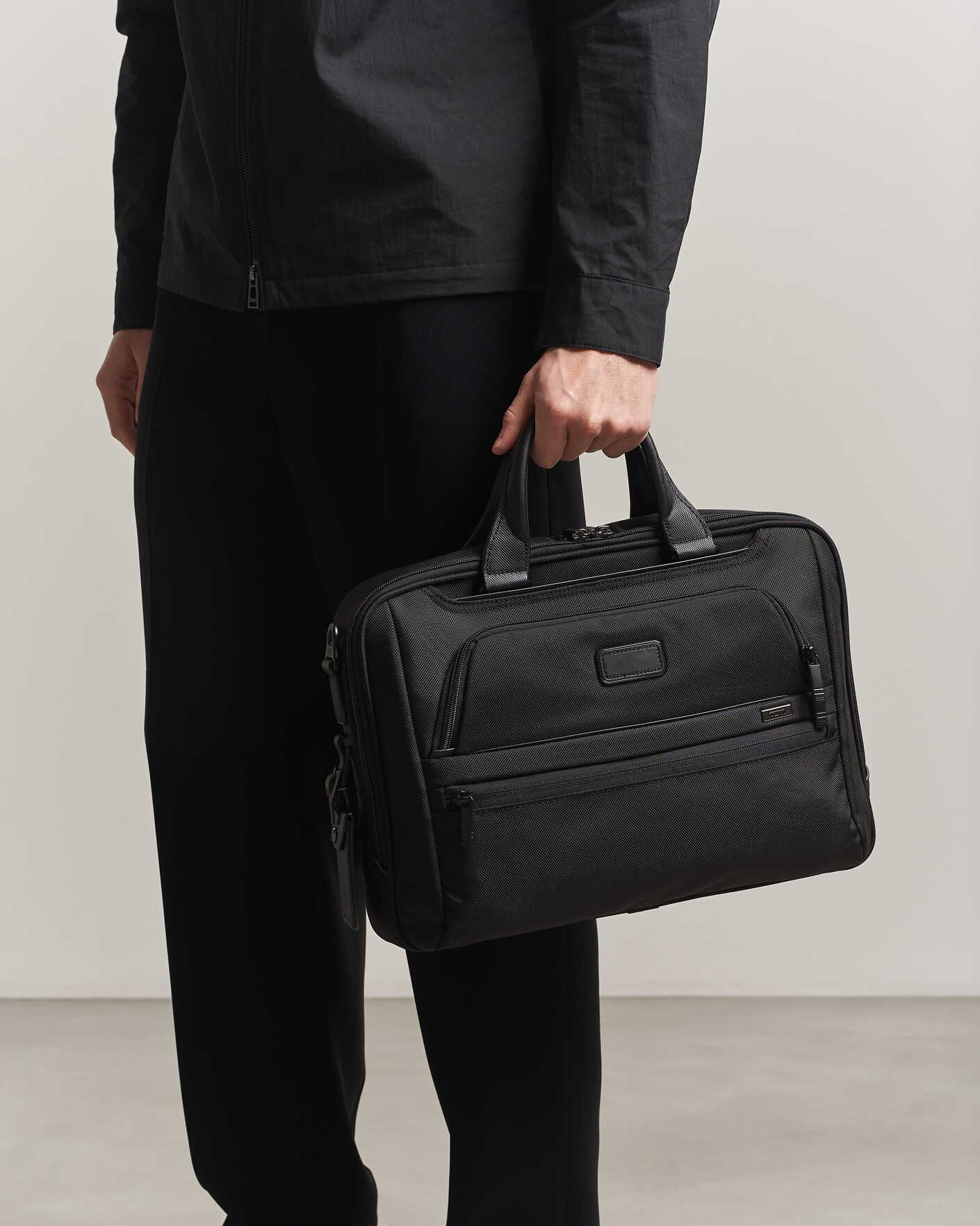Thin Sartorial Leather Briefcase Black
