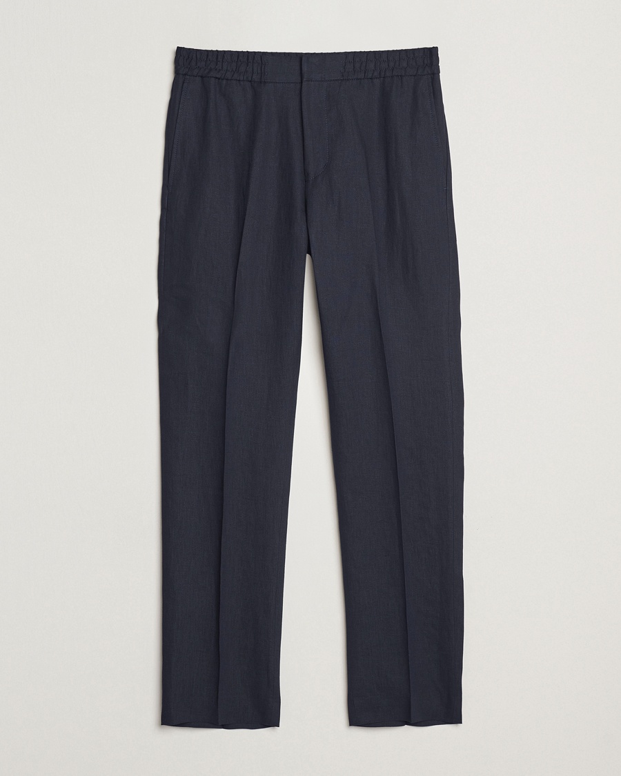 Linen Drawstring Trousers Navy