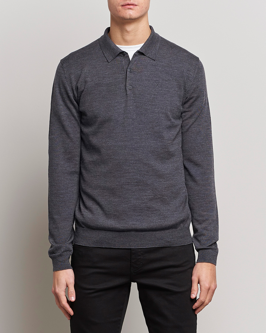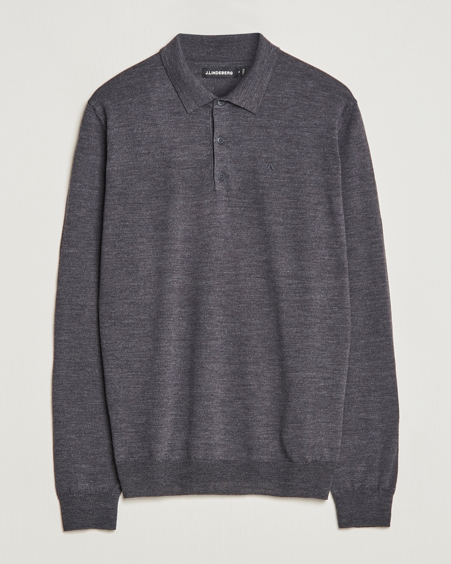 Merino Wool Long Sleeve Polo Light Grey
