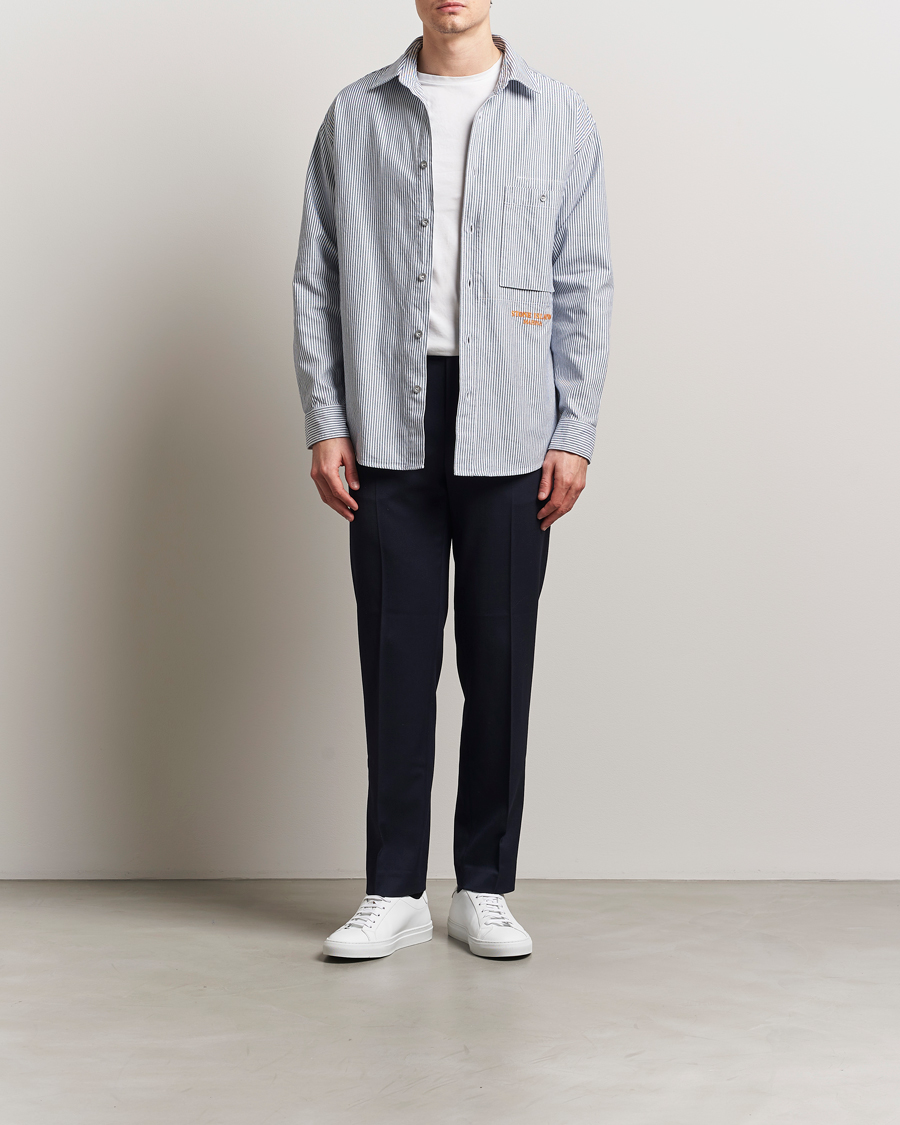 Marina Striped Oxford Cotton Overshirt Blue Marine